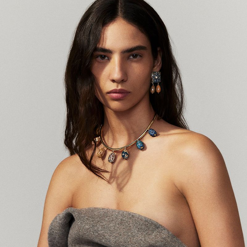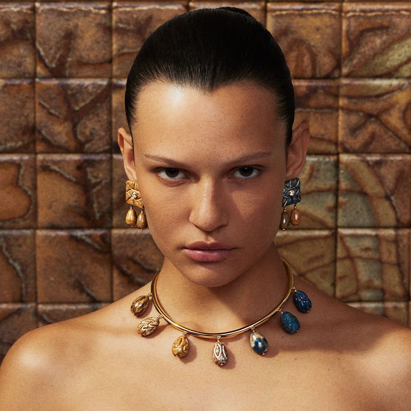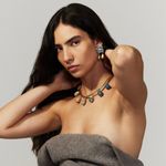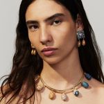 18k yellow gold earrings with Brennand's ceramics and diamonds.