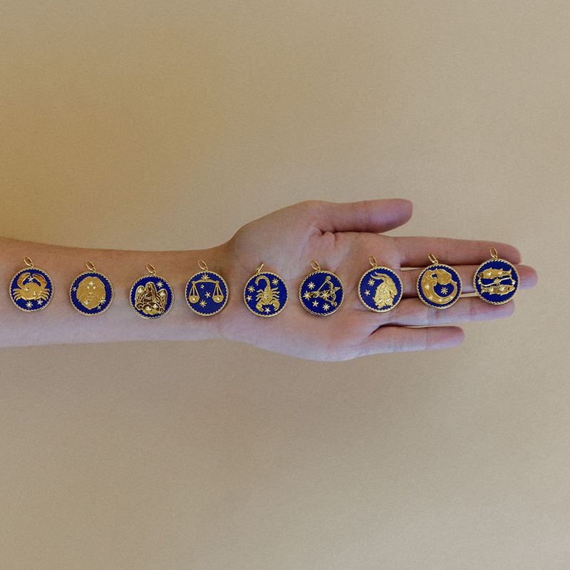 18k yellow gold pendant with lapis lazuli and diamonds.